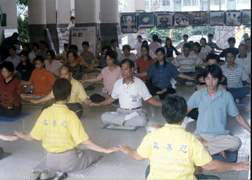 ![]() 研习讲座之一主题:科学与正见 | ![]() 研习学员炼习第五套功法 |