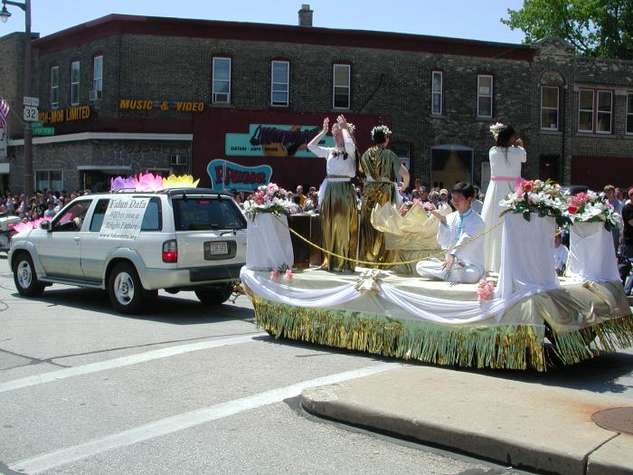 【明慧网2004年7月12日】2004年7月10日,法轮功学员参加了在威斯康星州密尔沃基市(Milwaukee)传统的南海滩欢庆游行(South Shore Water Parade), 今年是密尔沃基市市民第75次欢庆该节日,也是美中地区法轮功学员们第二次参加,在2003年首次参加该游行时,法轮功学员以良好的精神面貌和精心准备的花车获得了该年“最佳外观奖”(Best Appearing Unit)。