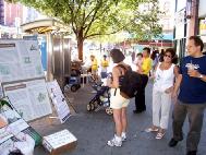 记者也发现,有些路人在接过资料走了一段后还会返回来问学员到底什么是法轮功。