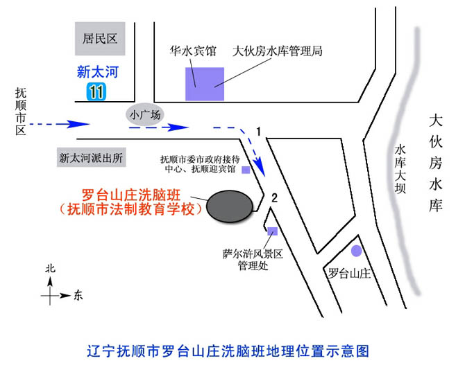 ![]() 罗台山庄洗脑班地理位置示意图 | ![]() 罗台山庄洗脑班平面示意图 |