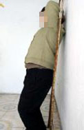 恶警将大法学员的双手背向背后,然后用手铐铐住,再用警绳系在手铐上,或直接用警绳将人以各种方式悬吊起来,并配用电棍。这是一种极其痛苦的刑罚,四肢无法活动,90度大弯腰,一会儿双臂便失去知觉,让人生不如死,极难承受。主要悬吊手段有: