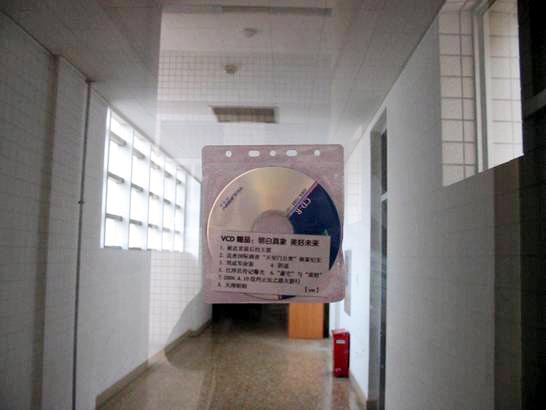 教学大楼里的真象光盘,主要内容:1. 被迫害前后的王霞;2. 追查国际调查“天安门自焚”疑案纪实;3. 刘成军命案;4. 阴谋;5. 江泽民传记曝光;6.“ 豪宅”与“敛财”;7. 纽约正法之路大游行;8. 天理昭昭。(光盘贴在玻璃门上)