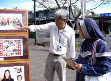 ![]() 女回教徒,接下法轮功真象资料,虔诚的听学员介绍摄影展的内容。 |
