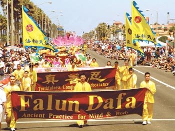 有法轮功的地方,就有法轮功学员讲真象的队伍,有法轮功学员的地方,就有法轮大法高高飘扬的旗帜。
