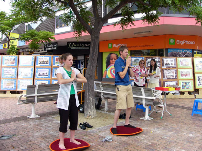 还有一位中国留学生通过学员讲真象,了解了自焚伪案是中共邪党所编,明白了法轮功学员在中国受到的迫害。他拿了许多真象资料和《九评》,说要带回国给父母和亲朋好友看。