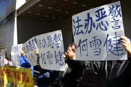 美国休士顿法轮功学员于2005年12月15日下午一点至两点在中领馆前进行强烈抗议活动,抗议对法轮功学员长达六年多的血腥迫害,强烈谴责中共流氓恶警何雪健强奸法轮功女学员的卑劣行径,并要求严惩犯罪恶警。