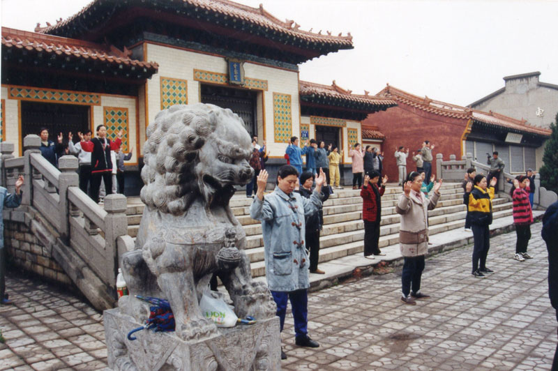 99年以前,长春第一汽车制造厂炼功点集体洪法炼功场面