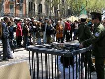 2005年4月10日,西班牙法轮功学员在巴塞罗那(Barcelona)市中心最繁华的兰布朗大道举办了反酷刑展以揭露江氏集团在中国对法轮功的残酷迫害。上午10点,学员们到达兰布朗大道,刚摆放好部分图片,其它一切都还没有布置好时,就不断有人过来观看图片,询问发生了什么事。当知道了在中国正在发生的对法轮功的迫害后,人们纷纷签名表示声援法轮功学员,呼吁停止迫害。