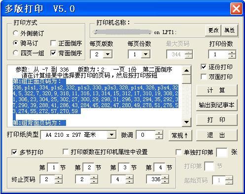 问题:从网上下载的word版的《转法轮》,编辑页码时,论语、目录、正文都有各自的页码,也就是说,都有1,2,3页。用骑马钉方式打印,如何在打印时将不同段落的页码区分?