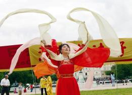大法弟子表演传统的绸带舞