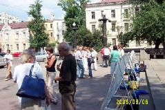 2005年8月6日,俄罗斯法轮功学员在莫斯科中心区讲真象,呼吁人们关注并帮助制止中共恶党对法轮功的残酷迫害。这场迫害已经持续六年多了,迫害的残酷和疯狂仍被中共极力掩盖着。几年来莫斯科法轮功学员,为了让世人了解迫害真象,肃清中共恶党通过其驻外使领馆和海外媒体散布的流毒,他们从一个社区到另一个社区的集中讲真象,深入到社区的街道、商店、地铁口,广发资料,使更多的市民了解到真象并发出正义呼声。
