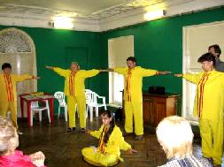 【明慧网2005年9月2日】2005年8月25日,莫斯科法轮功学员参加了第四届俄罗斯民间传统医疗国际会议。在会议期间学员们展示了法轮功的五套功法,并向与会者介绍了法轮功是什么,以及中共对法轮功
