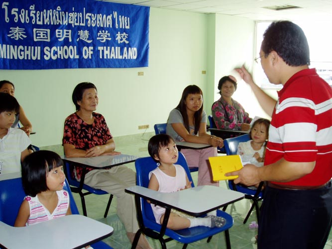 泰国明慧学校第一次上课,学生和家长们在认真的听课