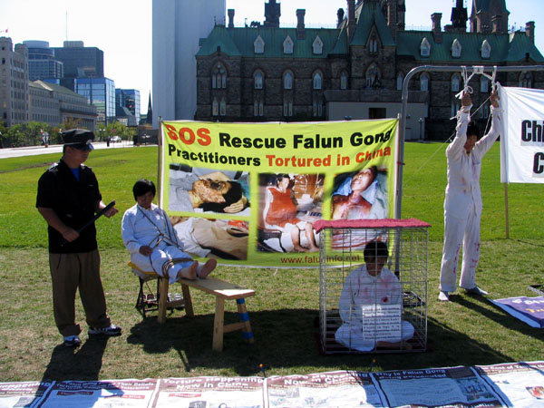 渥太华法轮功学员办反酷刑展讲真象(图)
