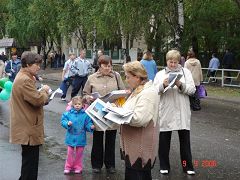 人们聚精会神的倾听真相,争相索取资料,并对法轮功学员表示感谢。他们都祝愿学员反迫害成功。