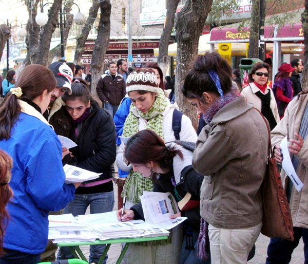 【明慧网二零零六年十二月十三日】二零零六年十二月九、十两日,土耳其法轮功学员在国际人权日之际汇聚于首都安卡拉,在市中心Kizilay最繁华的步行街举行了为期两天的揭露中共恶行、呼吁停止迫害的征签活动,向土耳其民众揭露中共持续七年多的对法轮功的残酷迫害。