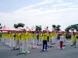 ![]() 2004年5月9日宜兰法轮功学员受邀在苏澳荣民医院的院庆园游会表演功法 | ![]() 2004年宜兰绿色博览会炼功洪法 |