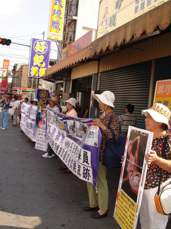 法轮功学员于路边陈情,并让乡民了解中共虐杀及活体摘取法轮功学员器官的暴行