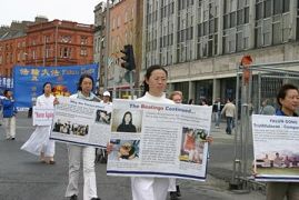 游行队伍走出奥康诺大街,经过圣三一学院。当到达爱尔兰议会和外交部门前时,爱尔兰法轮功学员代表戴冬雪女士及凯瑟琳女士分别递交了给爱尔兰总理博提·艾亨及外交部部长德门特艾亨的请愿信,呼吁爱尔兰政府协助展开对中国劳教所及监狱的全面调查,制止中共对信仰真善忍的法轮功学员的屠杀。