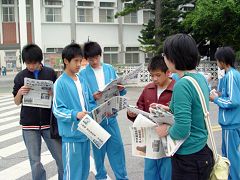 ![]() 在夜市用大荧幕播九评,发资料和征集签名。 |