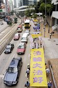 ![]() 4月29日港岛金融中心区 | ![]() | ![]() 纪念4.25和平上访的横幅在高举 |