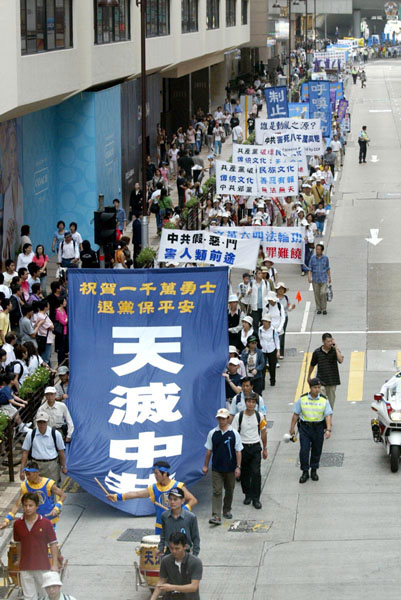 2006年4月29日(星期六)在港岛举行的“呼唤良知 制止迫害”大游行,以及4月30日(星期日)在九龙举行的“全民觉醒 解体中共”大游行,都有超过1500名来自香港本地与周边地区的各界民众参加,其中包括法轮功学员、退党服务中心与大纪元义工,以及香港民主人士等。他们除了声援与庆祝1千万勇士退出中共外,还抗议中共的残酷暴政,包括在全中国各地劳教所、监狱、医院等相关设施活体摘卖法轮功学员、良心犯器官的兽行,并呼吁社会各界及国际社会支持及参与全面彻查劳教所等设施的种种暴行,帮助结束这场迫害。