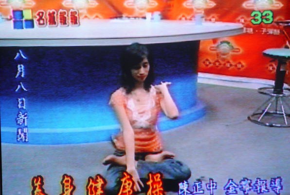 “名城有线电视”是台湾金门唯一的地方电视台,以乡亲为出发点,提供民众知情的权利,近来广受好评,收视节节攀升。“头家开讲”由董事长石兆瑉主持,探讨议题广泛,凡教育、医疗、经济等无所不谈,其以老百姓的视角,切入专业的议题。“头家开讲─健康养身DIY”每天重播四次,连续播了一个星期以飨观众。“名城报导”新闻节目中的“养身健康操”亦以每天四次的循环,重复介绍法轮功功法。