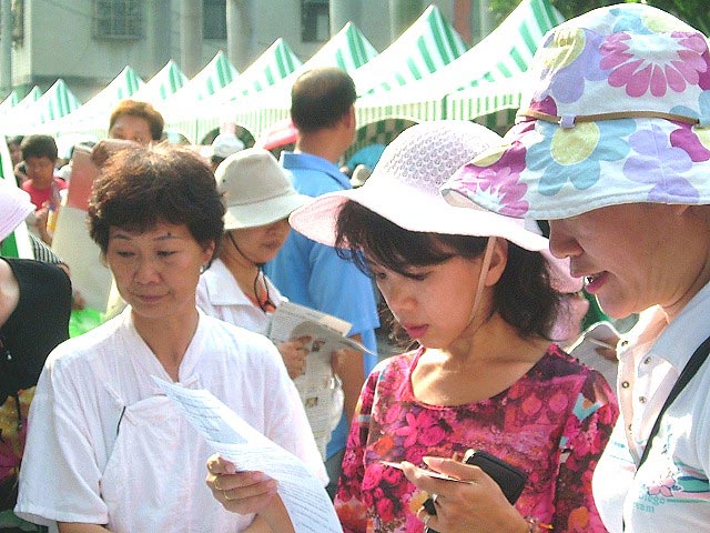 7月初,加拿大前亚太司司长、前资深国会议员大卫•乔高(David Kilgour)和国际人权律师大卫•麦塔斯(David Matas)组成的独立调查组经过两个月的调查、取证,发布了调查报告,确认中共活摘法轮功学员器官真实存在。学员们将此讯息的真相材料一一分送给蓝染节的参观游客,多数游客都被这残酷事实所震惊。经过学员进一步解说,签名的人潮一波波涌来,明白真相的人们甚至排着队等候签名,共同制止这令人发指的暴行。