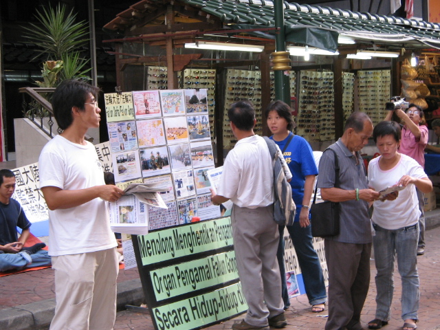 由于这里人潮众多,学员多次选择在这里举办揭露中共迫害的活动。近两个月来,马来西亚法轮功学员频繁的在新山和吉隆坡等城市进行街头征签,大量的曝光了中共的暴行。