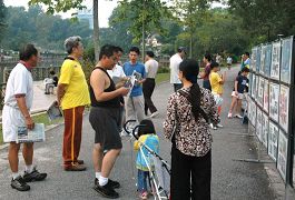 ![]() 在公园运动的市民观看九评图片展 |