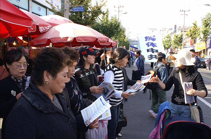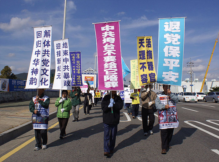 【明慧网二零零七年十月二十三日】二零零七年十月二十日,韩国民众在富平举行了声援二千七百万民众退出中共及相关组织的活动。近期韩国的“三退”(退出中共党、团、队)形式有了新的变化,过去三退的人主要集中在首都地区,现在韩国各地都有很多中国人三退,而且以真名三退的人越来越多了。