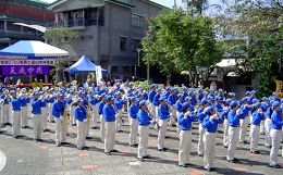 天国乐团、新唐人旗鼓队及腰鼓队,在宜兰市的游行结束后,下午转往宜兰县内工商大镇──罗东,相继在中山公园及罗东运动公园两处人群汇集处,演示功法及表演曲目,展现法轮大法的美好,受到来往民众的注目与掌声。