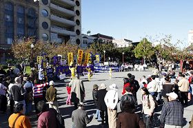 当天中午时分,在旧金山花园角广场上,与会者打着“九评神威”、“天灭中共”、“退党自救”等大小横幅标语;明慧学校的学生表演了旗舞、孔雀舞、剑舞等舞蹈,寓意《九评》如剑,勇斩赤龙,挽救中华,迎来中国的新希望。