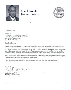 Sonia Gallimore是一位医生,丈夫Jerry Gallimore是一位牧师,他们曾在新加坡住过七年,非常喜欢中国文化。这次他们带着自己的孙子从佛罗里达州来纽约过圣诞节,从几位新加坡的华人朋友那里听到了这场演出,就相约一起来观看,在演出过程中,他们不断的赞叹:“太好了!太精彩了!”在晚会结束后,他们说:“舞蹈的动作、舞蹈演员之间的协调,以及和乐队的伴奏浑然一体,太美了。”