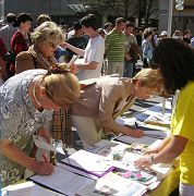 ![]() 适逢假日,许多民众驻足观看声援二千万退出中国共产党活动 |