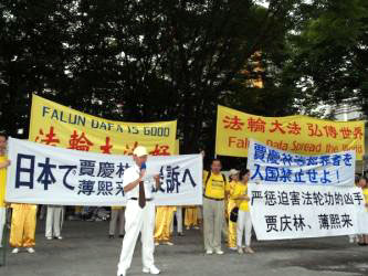 二零零七年九月十一日,在中共政协主席贾庆林、商务部长薄熙来以出席华商大会的名义访问日本之际,法轮功学员在东京举行集会和游行,呼吁日本当局禁止迫害法轮功学员的急先锋贾庆林和薄熙来入境,或把他们驱逐出境,并考虑在日本起诉两人。