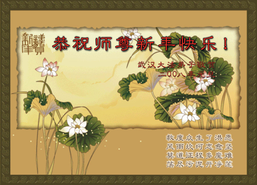 二零零八年在人间将是一个极不平凡的年度,师尊在人间正法已進入到了最后的时刻,剩下的时间真的不多了。我们一定会在新的一年中形成整体,共同精進,在静心学法中提高,在证实法、救度众生中升华,向慈悲伟大的师尊交一份满意的答卷。