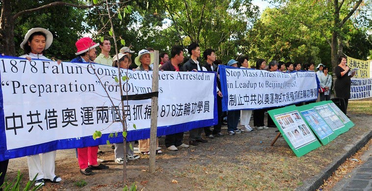 【明慧网二零零八年三月二十二日】北京奥运临近,在中国大陆,法轮功学员被绑架以及被迫害致死案例不断出现。据悉,这与中共政法委二零零八年二月十九日印发的一份密文直接相关。为此,澳洲墨尔本法轮功学员三月二十日在中领馆前集会,抗议中共以奥运为名加剧迫害,同时呼吁下月将访问中国的澳洲总理陆克文向中共提出有关法轮功人权的问题,帮助结束中共对法轮功长达九年的迫害。