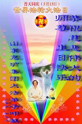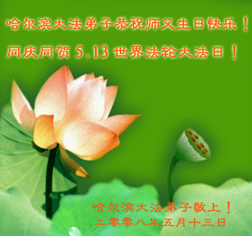 又一个世界法轮大法日到了,我们怀着无比激动的心情迎来了这个令人尊敬的日子:世界法轮大法日:5.13.我们无法用特别的词汇和语言来表达我们对大法的崇敬和对世界法轮大法日的敬意,我们能做的就是用我们的最大慈悲去救度哪些被谎言毒害的众生,完成我们的史前大愿。让我们用两句真言结束我们的贺词:法轮大法好!真善忍好!