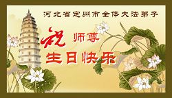 全体辛集市的大法弟子想念师尊,在这普天同庆的伟大的节日里,我们向师尊问好,恭贺我们伟大的师尊生日快乐!师尊对我们的救度之恩,我们无以言表,我们会遵照师尊的嘱托,做好正法中的三件事,除尽宇宙中的一切邪恶,救度众生!来兑现我们史前的洪誓大愿,圆满随师还!