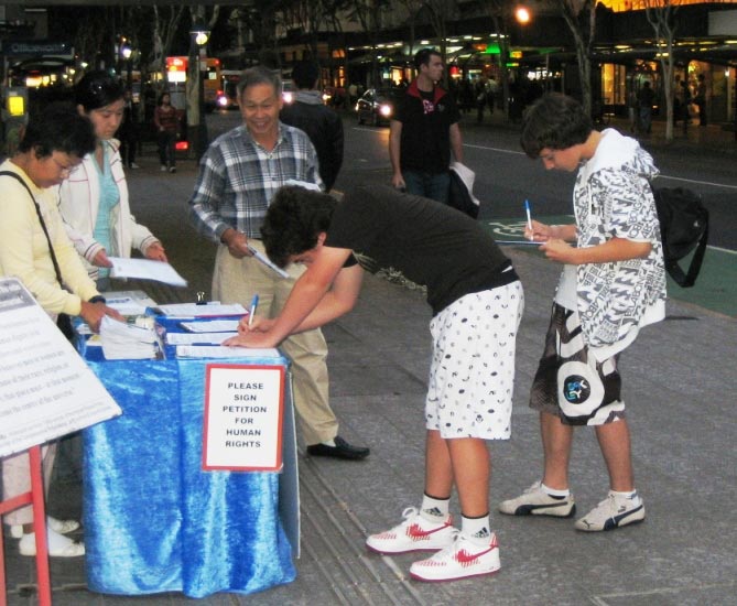 此外,不少中国留学生也主动前来了解法轮功真相,并索取《九评共产党》、真相光盘及资料等。一位女学生表示,能在澳洲遇见法轮功学员真是幸运,她表示会好好了解真相,并希望阅读《转法轮》一书。