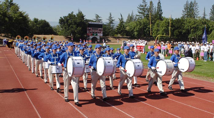 ![]() 在分列式入场仪式结束后,美西天国乐团应邀在主席台前表演乐曲 |