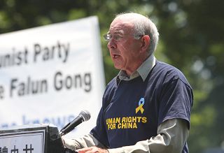 法轮功学员白宫国务院前要求驱逐彭克玉(图)