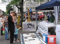 法轮功学员的功法演示,让人们感受到了法轮功的平和,酷刑和活摘器官的再现,让人们看到了中共迫害法轮功的残忍,法轮功学员讲述自己的体会,进一步揭露中的迫害,让人们更了解了法轮功学员从修炼中的身心提升。人们纷纷签名,呼吁立即制止这场迫害。