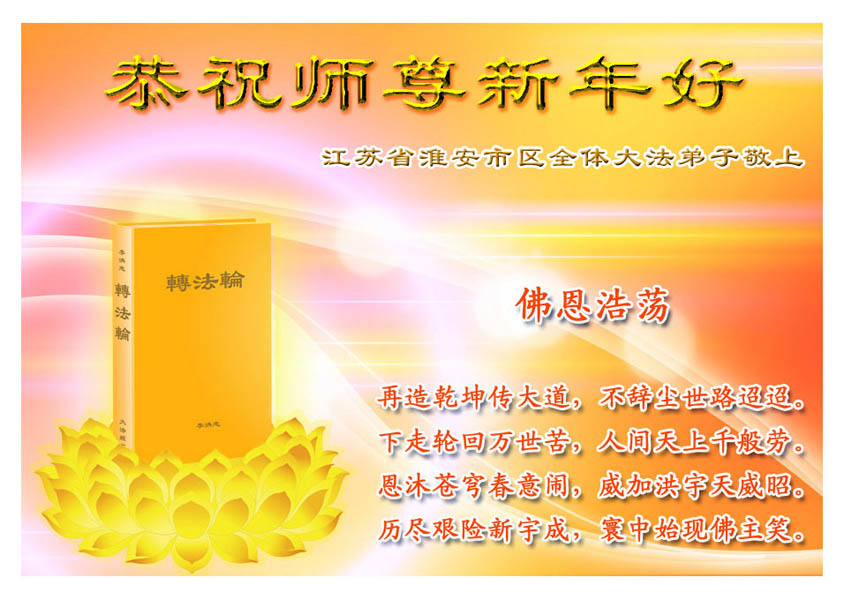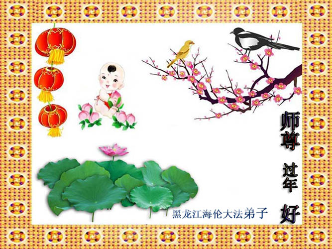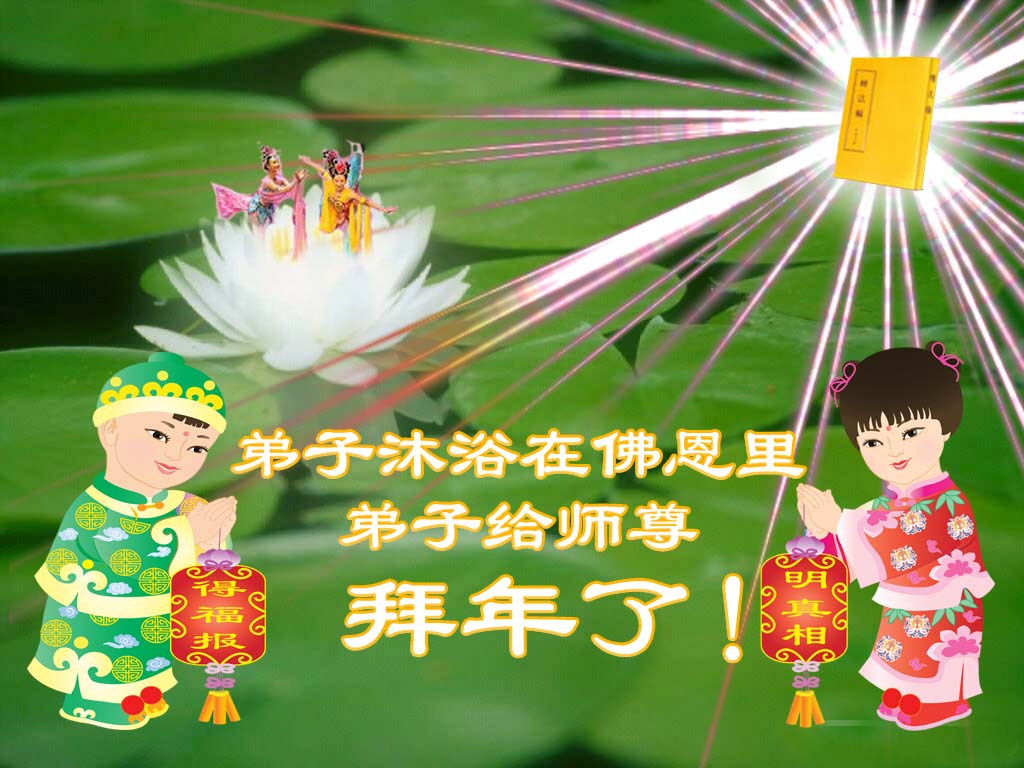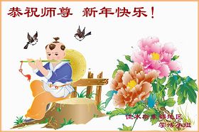 在中国新年到来之时,我们怀着无比崇敬至尊至高的心情衷心祝福师父中国新年快乐!弟子们想念师父,多想与师父同在,返本归真,回到我们真正的家园。为此只有加倍努力做好三件事,无条件的向内找,修去为私为我的旧宇宙观念,去掉最后根本的执着。讲清真相、救度众生,正念正行,完成正法时期大法弟子的伟大使命!