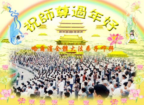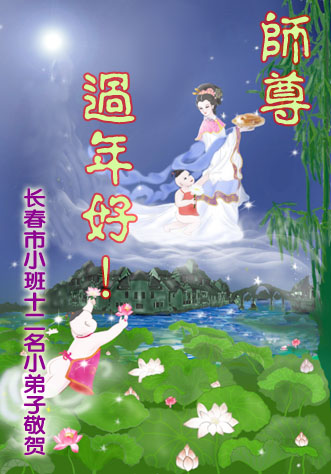 在此仅仅代表我与我的家人同修,以及我们的小组同修,向伟大的师尊问候:新年好!怀念师尊在锦州传法的时刻,师尊辛苦了。