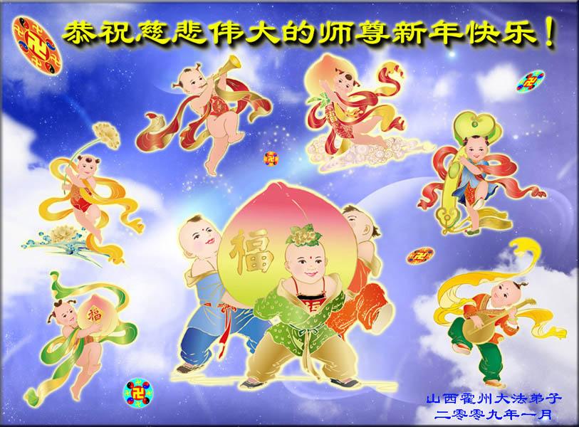 新年来临,弟子恭祝师尊过年好!在新的一年里,弟子一定珍惜万古不遇的机缘,不辜负师尊的救度洪恩,多学法,去私心,向内找,多救人。