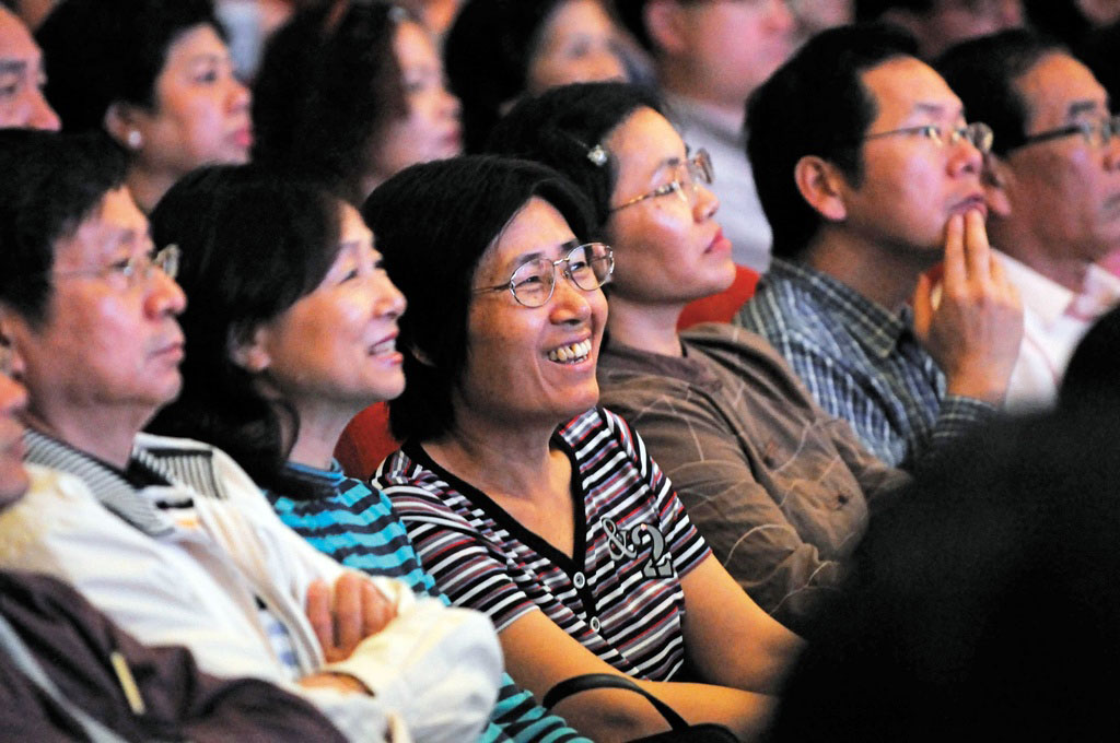 ![]() 台南第六场神韵演出,节目进行中观众的表情丰富 |