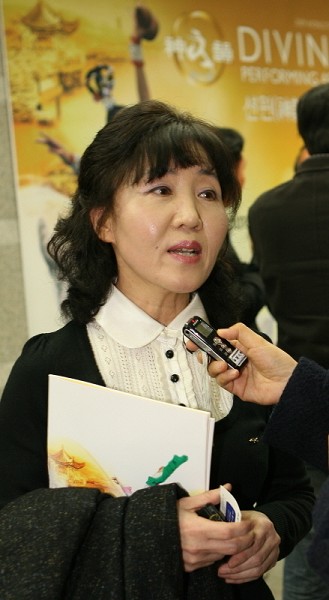 大邱艺术文化团总联合会副会长金日焕是韩国知名职业画家,欣赏了神韵演出后,激动的表示:“演出太好了,非常华丽和独特。”