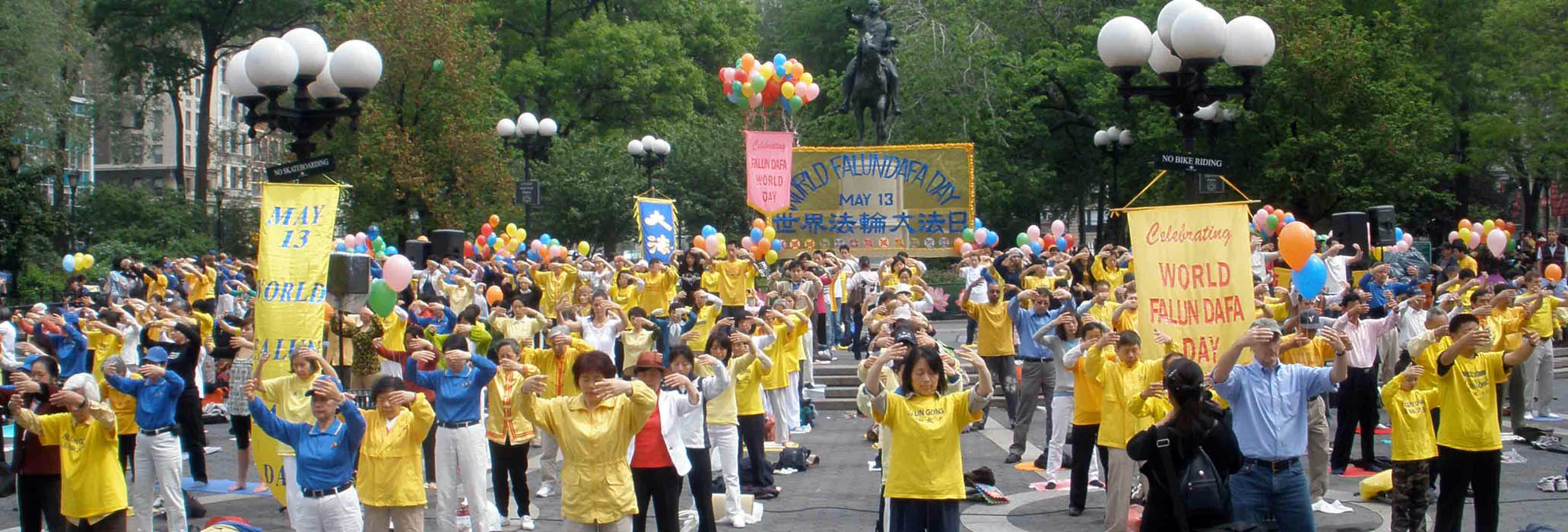 ![]() 纽约法轮功学员集体炼功,庆祝世界法轮大法日 |